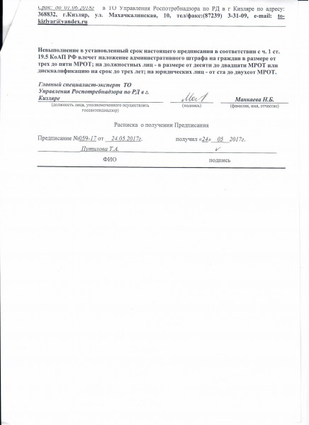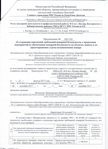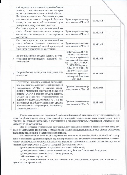 предписание об устранении нарушений требований пожарной безопасности