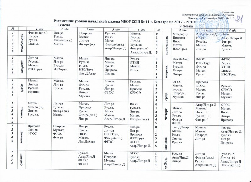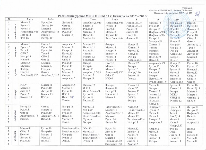 Расписание уроков на 2021-2022уч гг.МКОУ СОШ№11 г.Кизляра